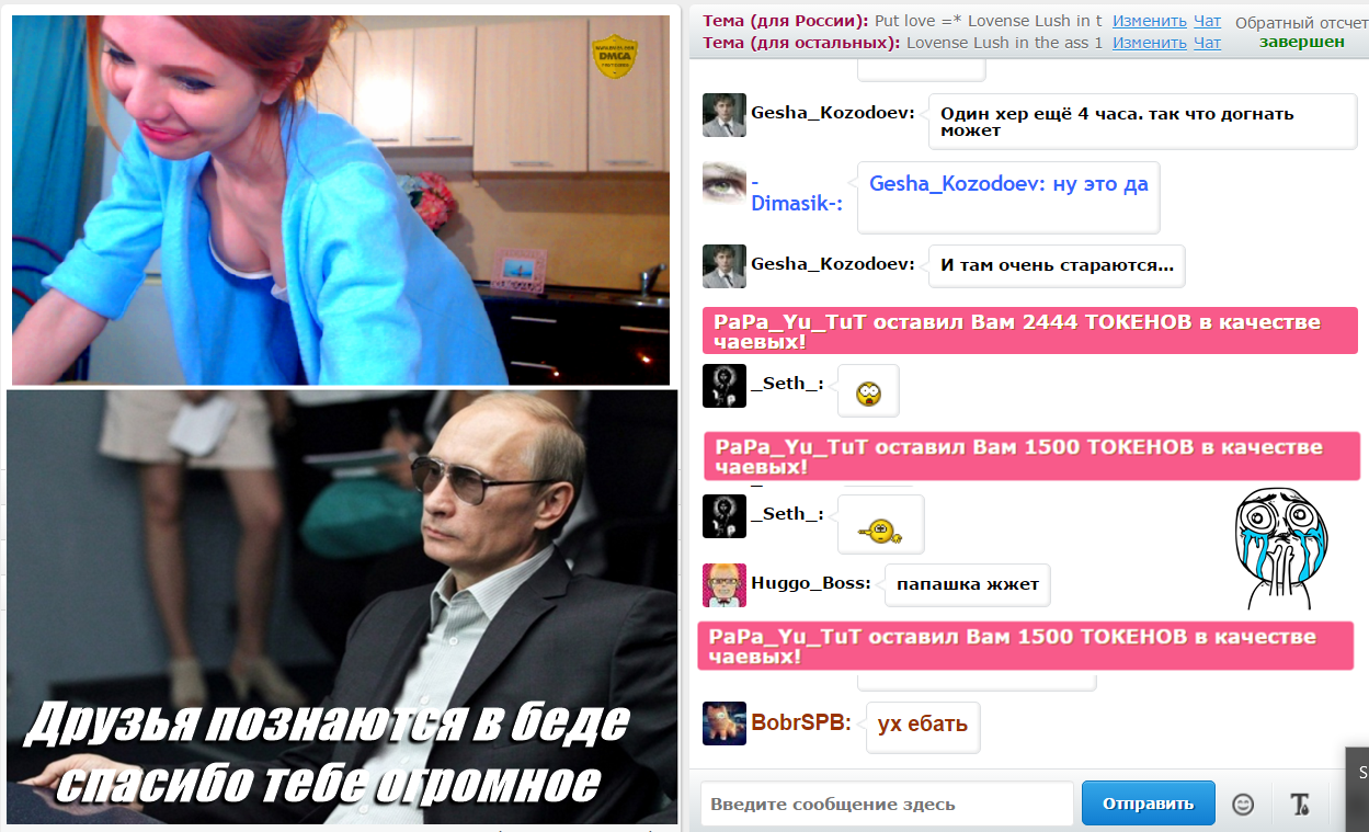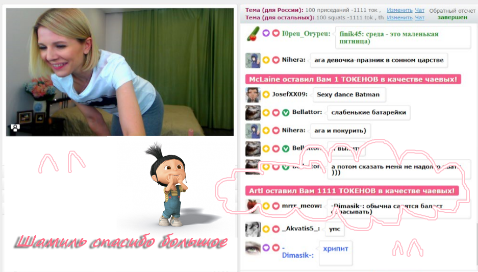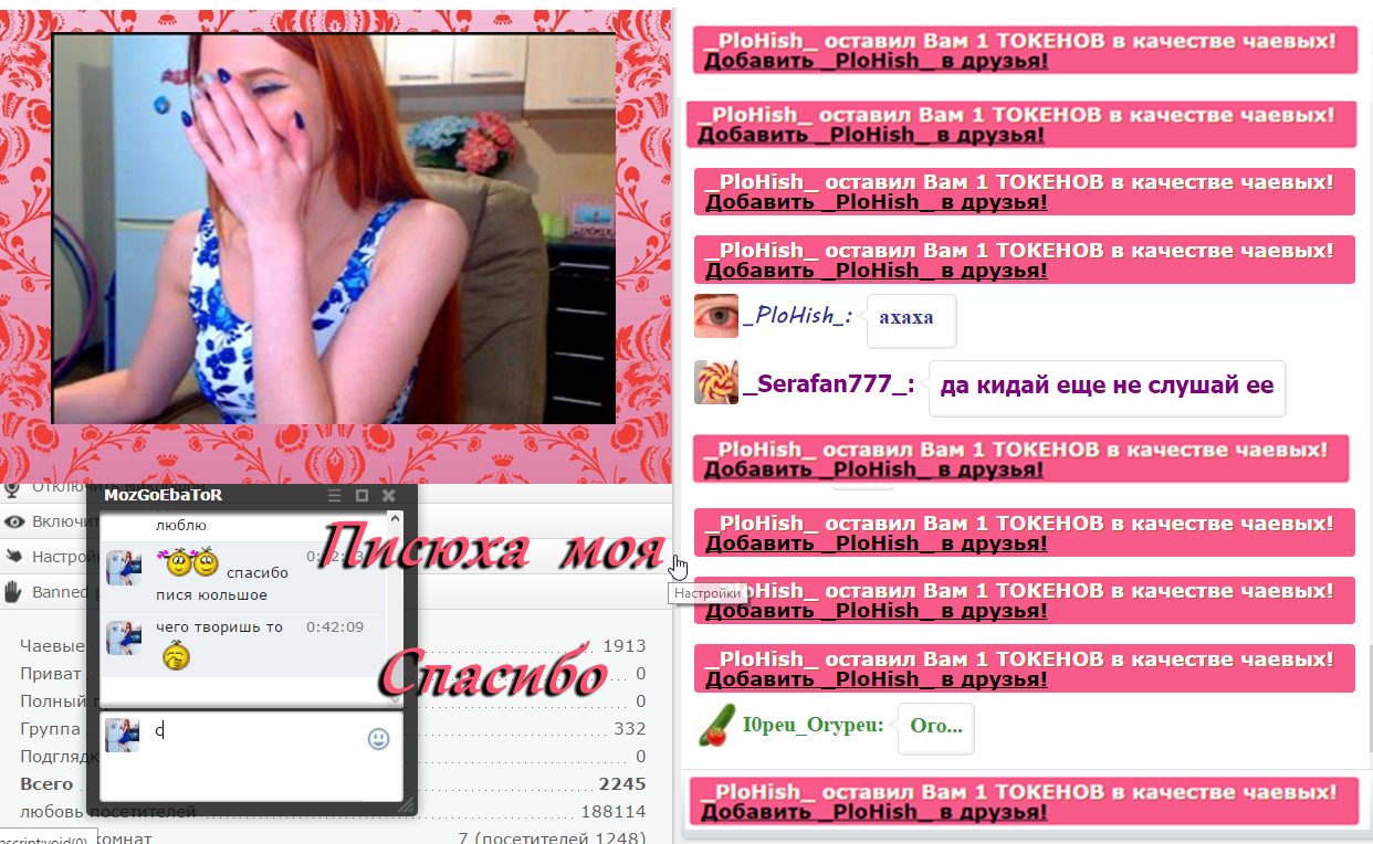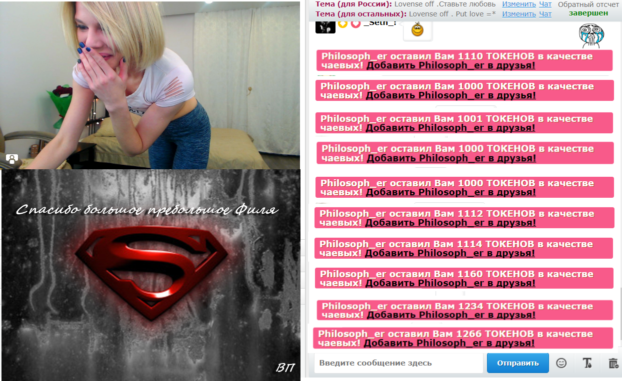 बटन पर क्लिक करके आप SweetKira5 को मुख-पृष्ठ पर 60 सेकंडों के लिए पहले स्थान पर ला सकते हैं. इस समय के दौरान मॉडल का चैटरूम कहीं अधिक दृश्य और अविश्वसनीय रूप से लोकप्रिय हो जाएगा! आपकी इस गतिविधि के बारे में एक सूचना चैट में दिखाई देगी जो मॉडल और अन्य उपयोगकर्ताओं को दिखाई देगी. SweetKira5 को आपकी यह बात जरुर पसंद आएगी और वो आपके प्रति ह्रदय से आभार महसूस करेगी!